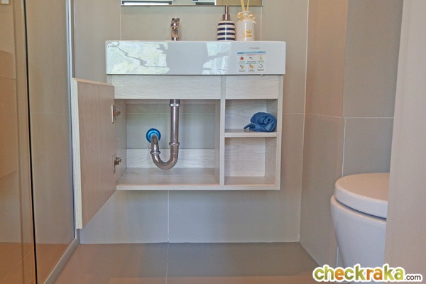 ด้านล่างมีตู้เก็บของบานเปิด บานพับแบบ Soft Close