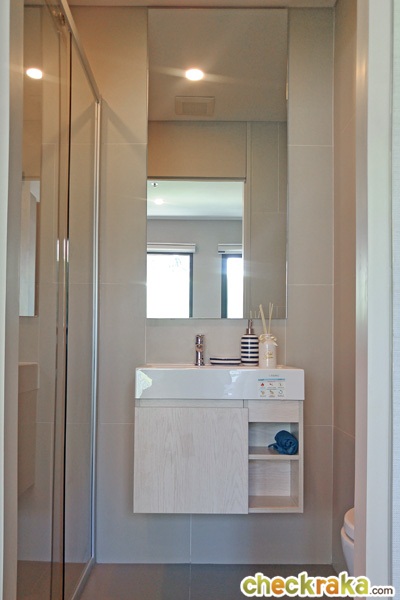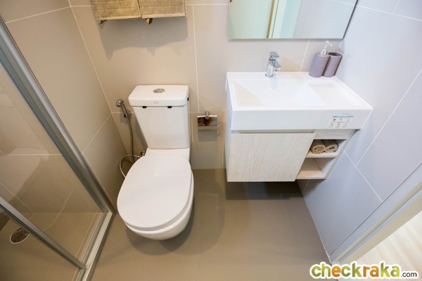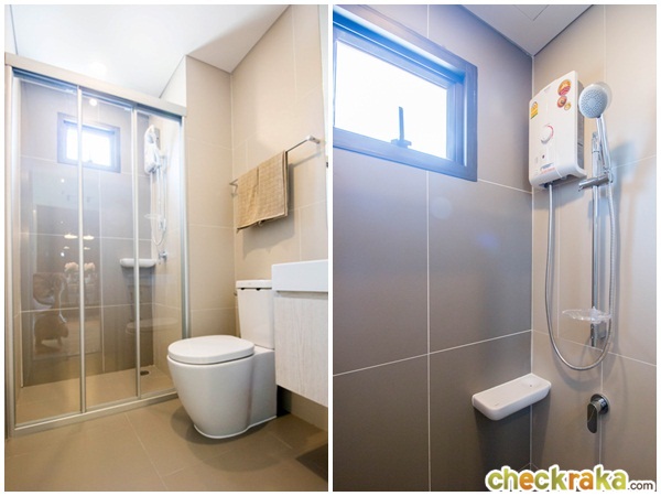 สุขภัณฑ์ภายในห้องน้ำเหมือนกับห้องที่แล้วเปลี่ยนเพียงตำแหน่งการจัดวาง โดยห้องนี้โซนอาบน้ำจะย้ายมาอยู่ทางขวา
