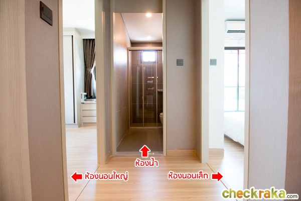 ห้องน้ำตั้งอยู่ระหว่างห้องนอนใหญ่กับห้องนอนเล็ก