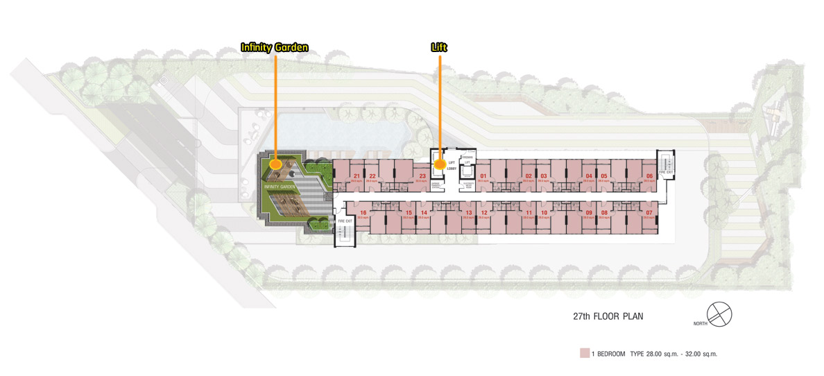 - อาคารชุดพักอาศัยสูง : คอนโด High Rise สูง 30 ชั้น จำนวน 1 อาคาร 491 ยูนิต