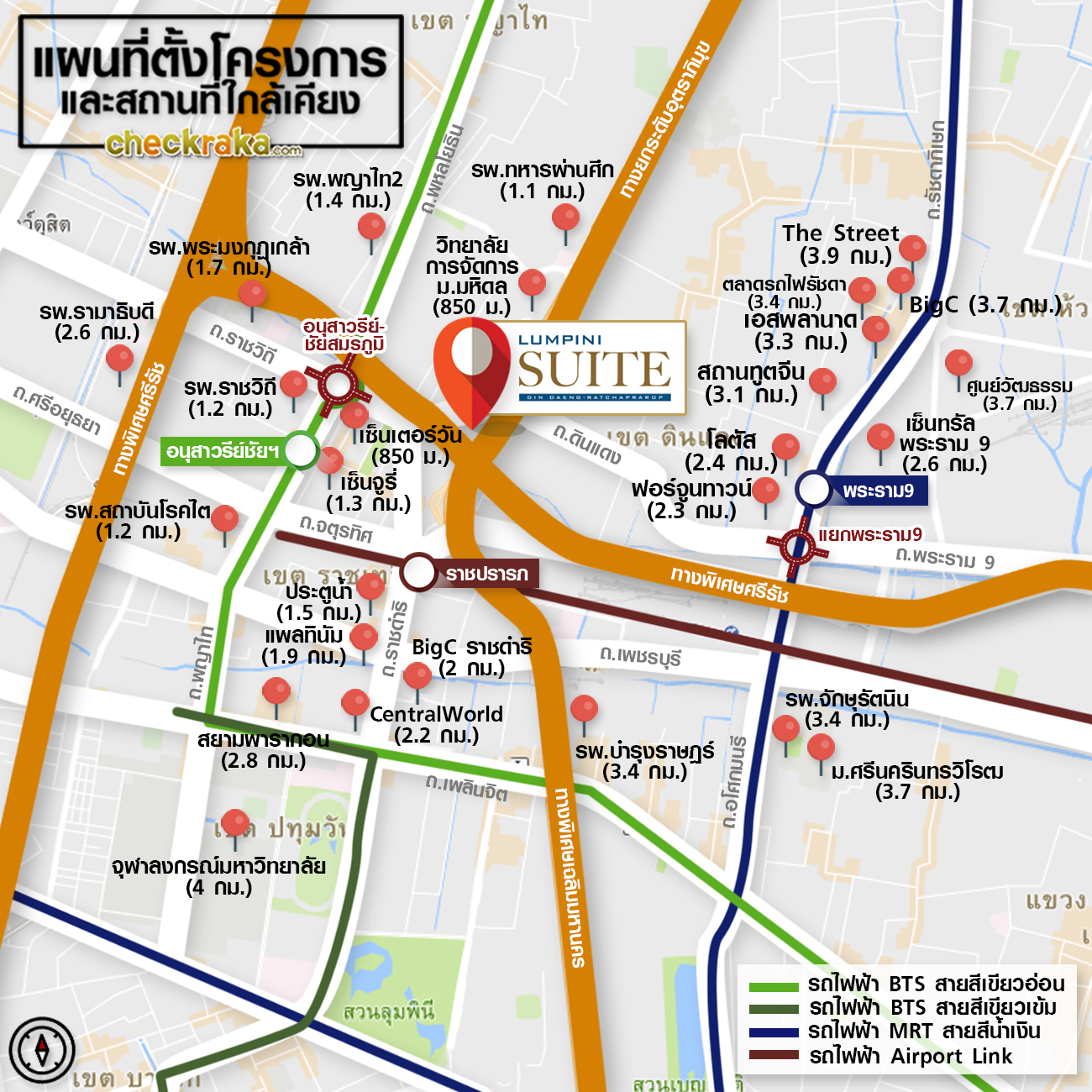 สถานีอนุสาวรีย์ชัยสมรภูมิ ห่างจากโครงการประมาณ 1 กิโลเมตร