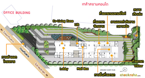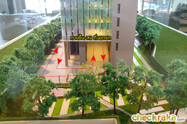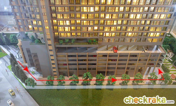 การเดินรถภายในโครงการเป็นแบบ 2 ทางวิ่งสวนกัน โดยจากประตูทางเข้าโครงการขับวิ่งเลาะมาทางขวาของตัวอาคาร เพื่อไปวนขึ้นที่จอดรถบริเวณด้านหลังอาคาร