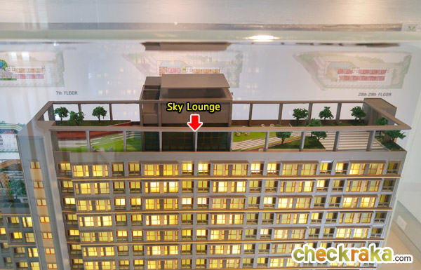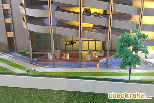 ตัวอาคารออกแบบในโทนสีน้ำตาล ห้องพักอาศัยเริ่มต้้งแต่ชั้น 7-29 จัดวางพื้นที่จอดรถยนต์ไว้ที่ชั้น 2-6 สามารถจอดได้ประมาณ 219 คัน แบบรวมจอดซ้อนคัน และมีพื้นที่จอดรถจักรยาน และจักรยานยนต์อีกประมาณ 10% อยู่ที่ชั้น 1 ส่วนสิ่งอำนวยความสะดวกหลัก อย่างสระว่ายน้ำ สตีม ซาวน่า จะอยู่ที่ชั้น 7 และห้องฟิตเนส อยู่ที่ชั้น 8 มีลิฟต์โดยสารมาให้ 2 ตัว และลิฟต์บริการอีก 1 ตัว อัตราส่วนการใช้ลิฟต์อยู่ที่ 254 ห้องต่อลิฟต์ 1 ต้ว
