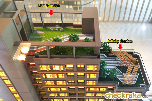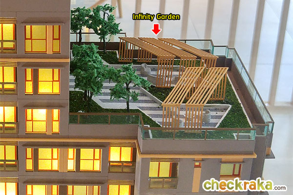 ด้านท้ายโครงการจัดเป็นพื้นที่สวนหย่อม มีมุมสนามเด็กเล่น และเครื่องสำหรับออกกำลังกายกลางแจ้ง