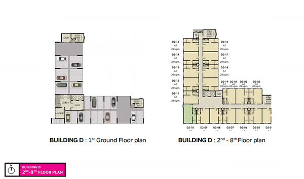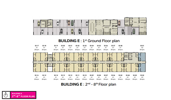- อาคาร E มีห้องพักอาศัยจำนวน 196 ยูนิต