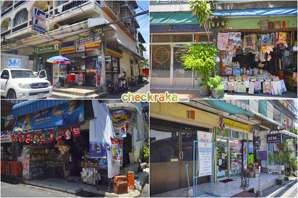 เดินไปฝั่งซ้ายมือของโครงการ (ฝั่งท้ายซอย) กันก่อนนะคะ มีร้านอาหาร, ร้านขายยา และร้านเสริมสวย