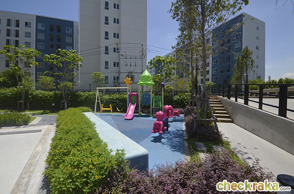 ตรงกลางของโครงการก็จะมีสวนสำหรับนั่งพักผ่อน มีสนามเด็กเล่นและเครื่องออกกำลังกายกลางแจ้งด้วย