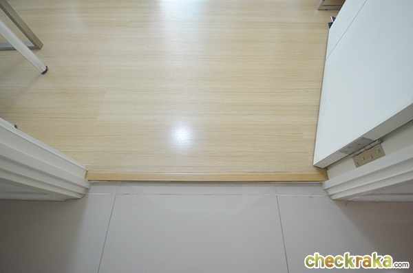 ก่อนเข้าเขตครัวมาดูที่พื้นกันก่อนค่ะ พื้นห้องครัวและห้องน้ำจะเป็นกระเบื้อง 40x40 ค่ะ โดนน้ำได้สบาย