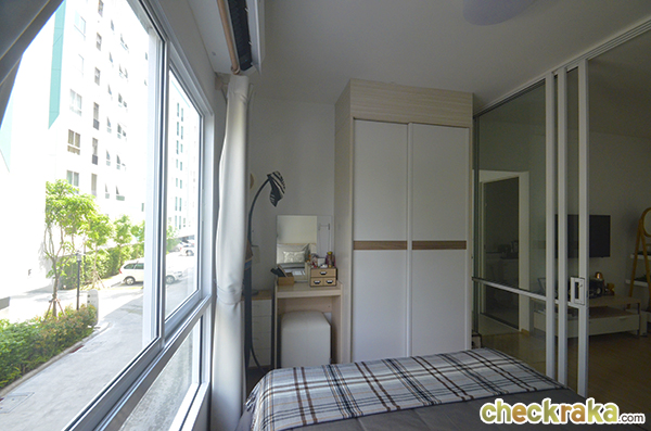 ภายในห้องนอนจะมีหน้าต่างบานฟิกซ์ ส่วนด้านบนเป็นบานสไลด์ รับแสงและรับลมทำให้นอนหลับสบายค่ะ