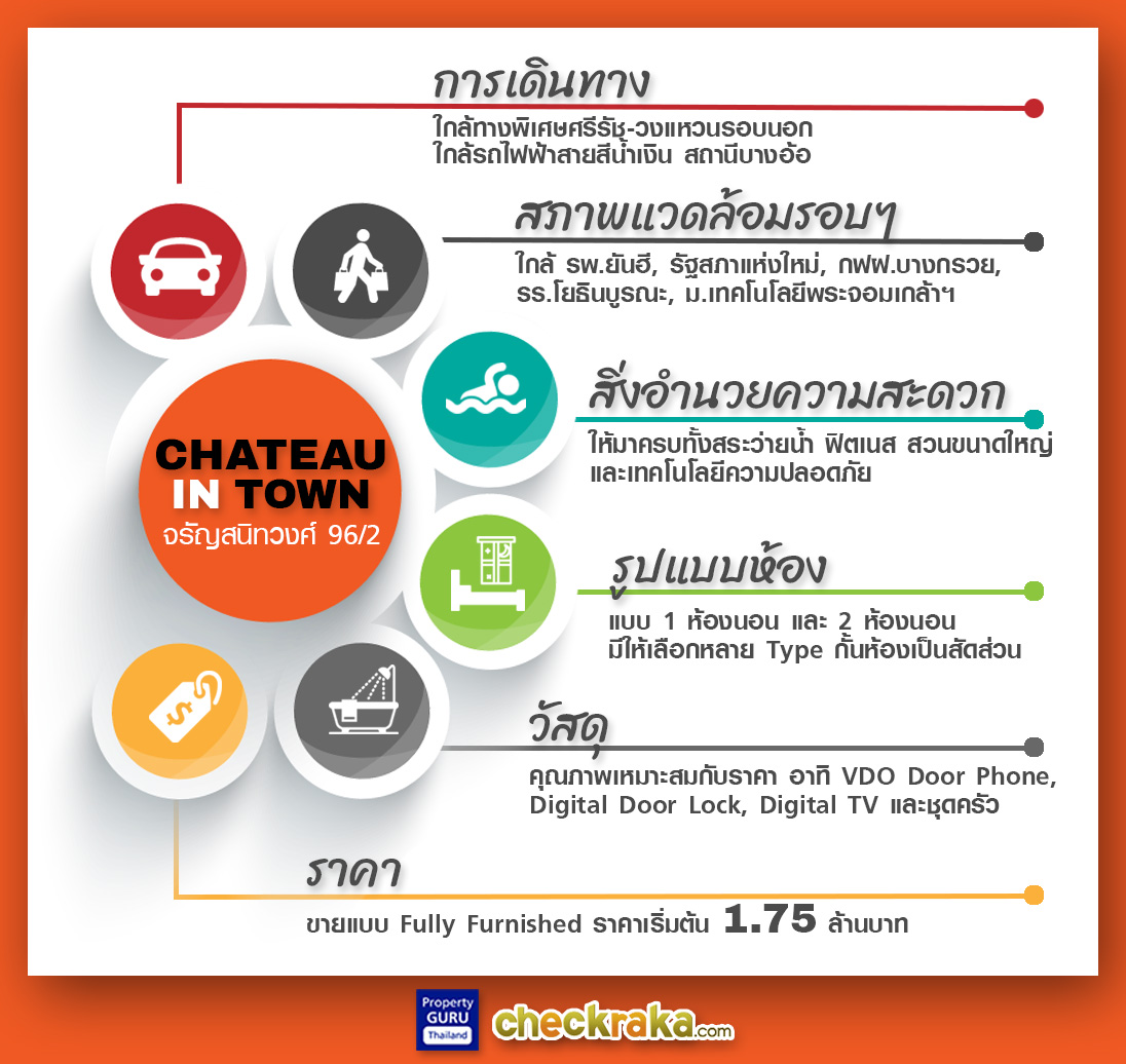 ติดต่อโครงการ โทร. 090-687-9696 หรือ 1172 กด 6 หรือ www.chateauintown.com