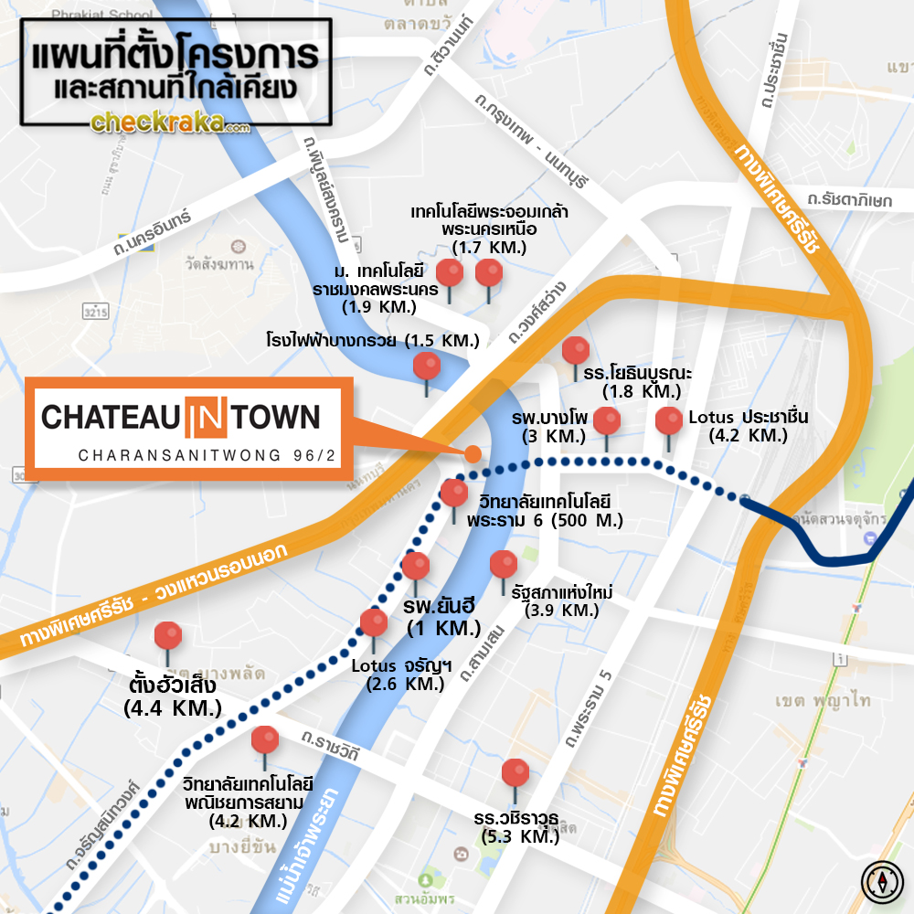 - ที่ตั้งโครงการ: ซอยจรัญสนิทวงศ์ 96/2 ถนนจรัญสนิทวงศ์ แขวงบางอ้อ เขตบางพลัด กรุงเทพฯ