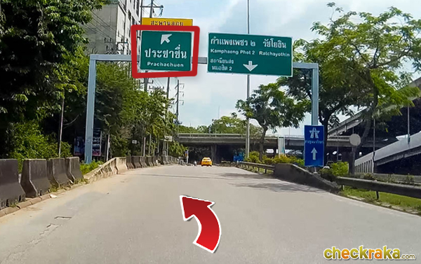 เริ่มต้นจากถนนวิภาวดีฯ เบี่ยงซ้ายออกไปตามป้าย "ประชาชื่น"