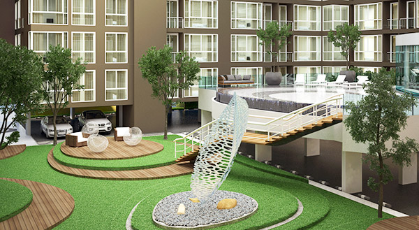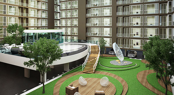 - พื้นที่ส่วนกลาง : เป็นสวนหย่อมพักผ่อน และ Jogging Track