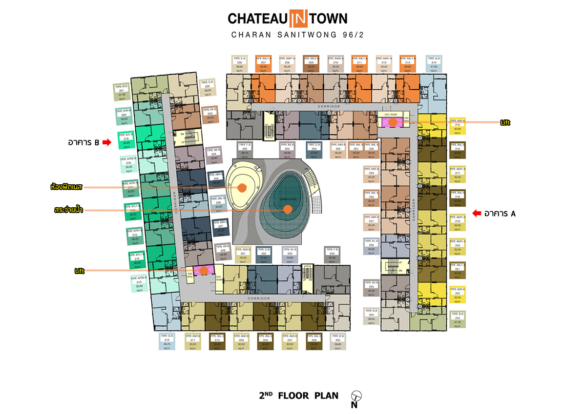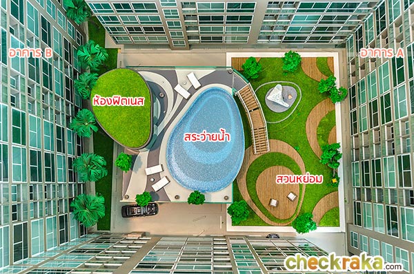- พื้นที่ส่วนกลาง : เป็นส่วนของห้องฟิตเนส และสระว่ายน้ำ