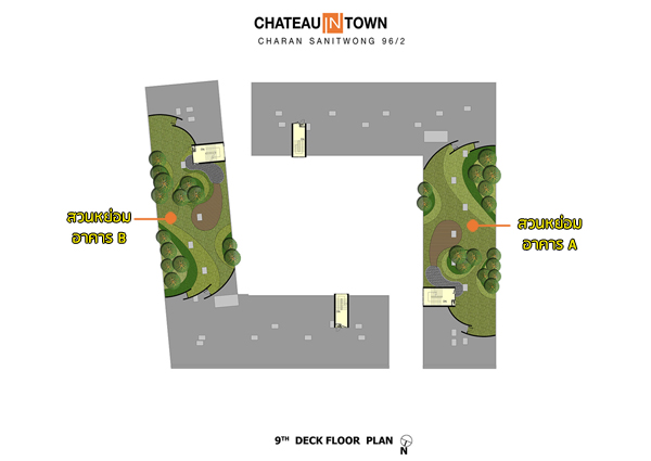 ชั้นดาดฟ้า อาคาร A และ อาคาร B : จัดเป็นพื้นที่ส่วนหย่อม
