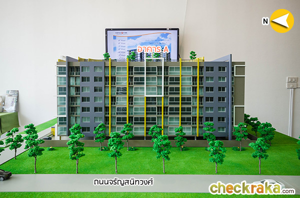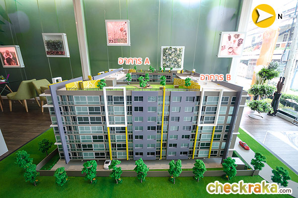 โมเดลโครงการมุมมองฝั่งทิศใต้ ติดกับบ้านพักอาศัยสูง 2-3 ชั้น