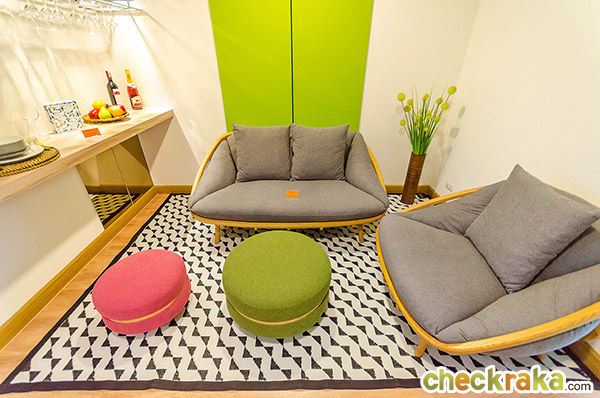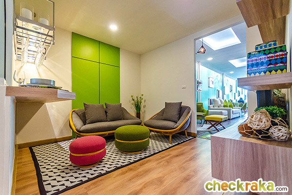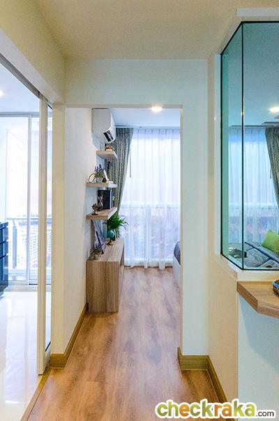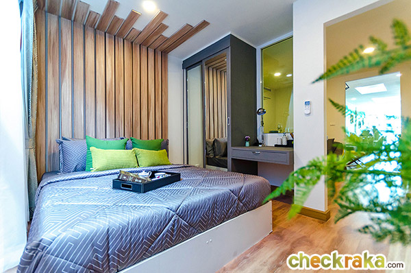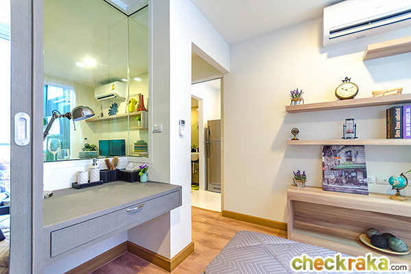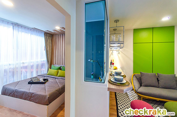 การออกแบบ Function ภายในห้องกว้างขวางไม่แออัด ในขนาดพื้นที่เริ่มต้นที่ลงตัวไม่เล็กจนเกินไป สามารถอยู่อาศัยได้จริง ส่วนเฟอร์นิเจอร์ และของแถมขึ้นอยู่กับโปรโมชั่นในแต่ละช่วง ต้องสอบถามจากทางโครงการ ณ ช่วงเวลานั้นๆ นะคะ โดยช่วงที่ทีมงานเข้าไปรีวิวนั้นเป็นช่วงที่โครงการจัดโปรโมชั่นพอดี ได้ห้องแบบ Fully Furnished เลยทีเดียว ซึ่งสิ่งที่ทางโครงการให้ ณ ช่วงนี้ก็จะมี เฟอร์นิเจอร์ Built-in และเฟอร์นิเจอร์ลอยตัวที่ออกแบบมาเฉพาะของโครงการ อาทิ โต๊ะ ตู้ เตียง (ไม่รวมที่นอน) พร้อมเครื่องปรับอากาศในห้องนอน ให้มาครบ