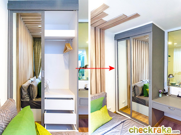 ข้างเตียงจัดวางเป็นตู้เสื้อผ้า และโต๊ะเครื่องแป้ง มีระยะห่างจากเตียงประมาณ 45 ซม.