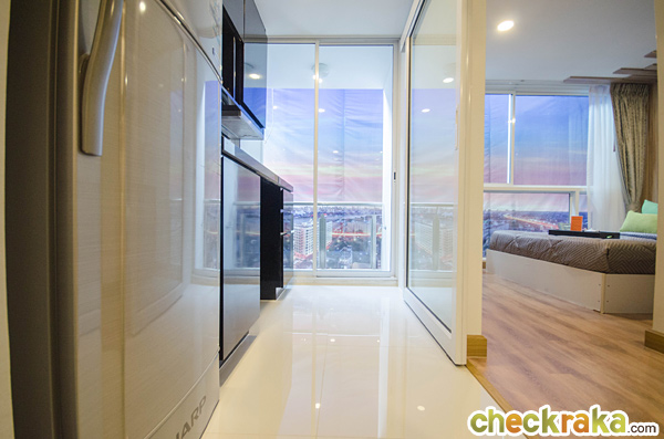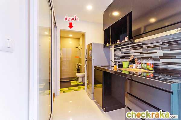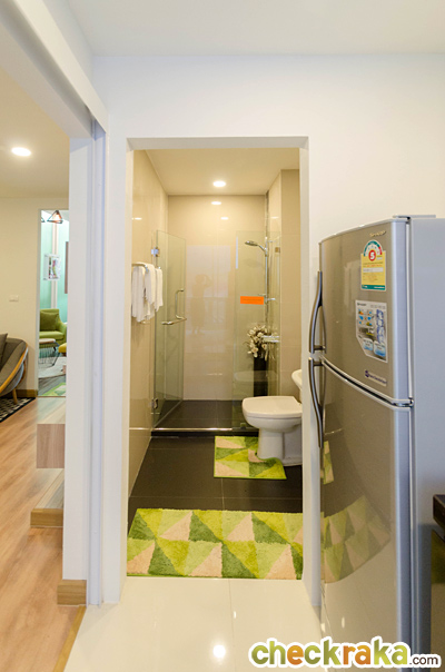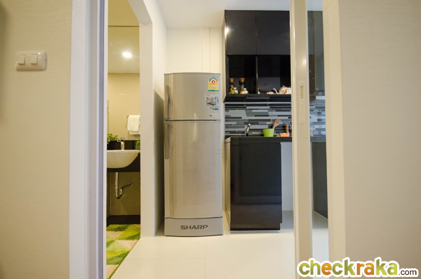 พื้นที่วางตู้เย็นหน้ากว้างประมาณ 75 ซม. ตั้งอยู่ด้านข้างเคาน์เตอร์ครัว ที่เห็นในห้องตัวอย่างเป็นตู้เย็นขนาด 7.5 คิว