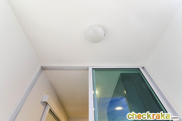 ความสูงจากพื้นถึงฝ้า 2.5 เมตร ฝ้าเพดานเป็นยิปซั่มบอร์ดฉาบเรียบทาสี ได้ไฟเพดานแบบฝังฝ้า 2 ดวง