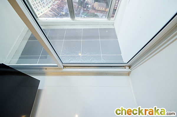 ธรณีประตูระเบียงยกขอบสูงประมาณ 10 ซม. ช่วยป้องกันน้ำฝน หรือน้ำที่จะซึมเข้ามาภายในห้อง