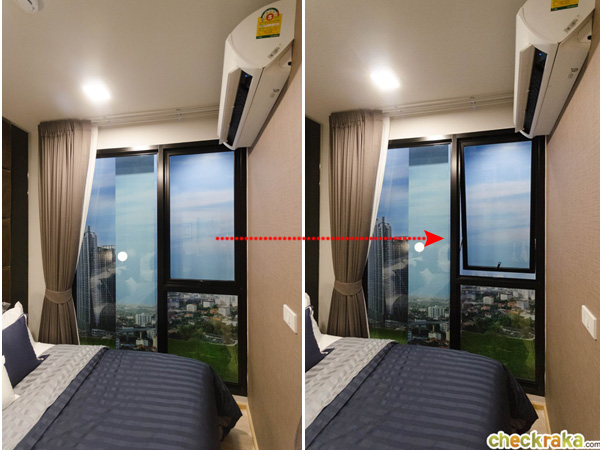 กระจกในห้องนอนก็เป็นลามิเนตได้แบบบานกระทุ้ง และบานติดตาย ความสูง 2.40 เมตร