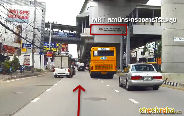 มุ่งหน้าไปตามถนนติวานนท์ ผ่าน MRT สายสีม่วง สถานีกระทรวงสาธารณสุข