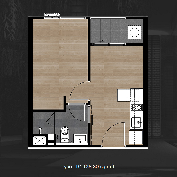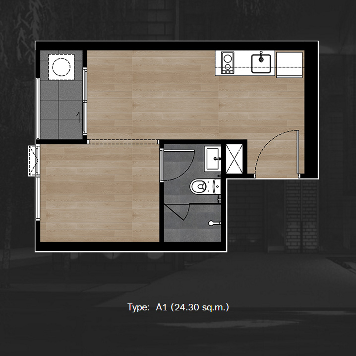 - แบบ Studio มีขนาดพื้นที่ใช้สอย 2 ขนาด 24.3 ตร.ม. และ 25.7 ตร.ม.