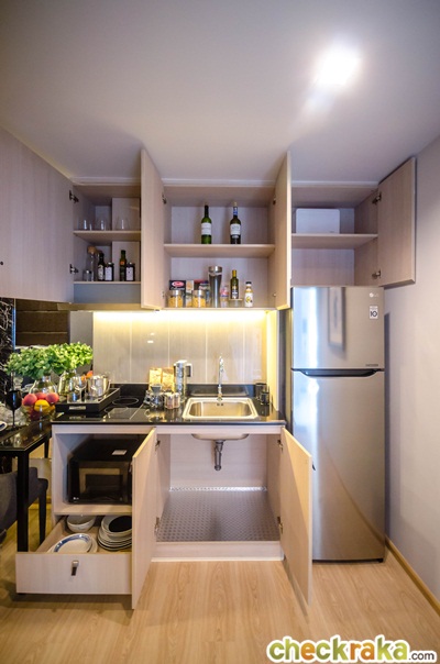 เข้ามาในห้องโซนแรกที่เจอคือห้องครัว ซึ่งเป็นแบบครัวเปิด