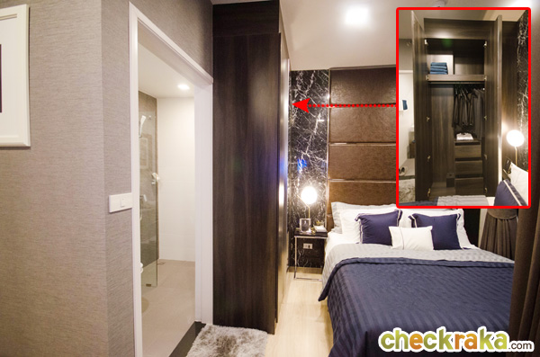 ตำแหน่งของตู้เสื้อผ้าอยู่หน้าห้องน้ำ
