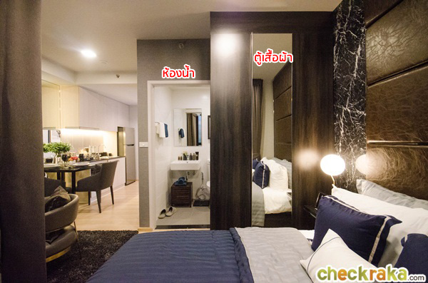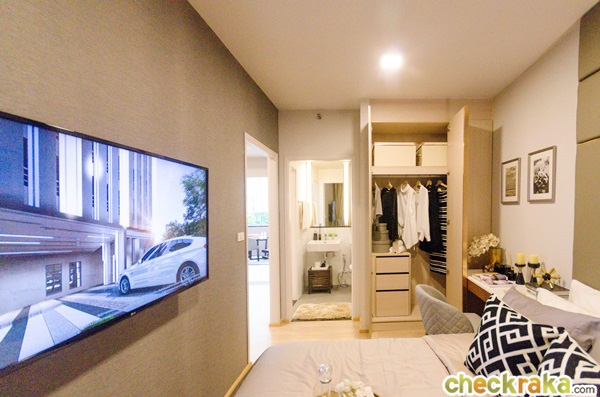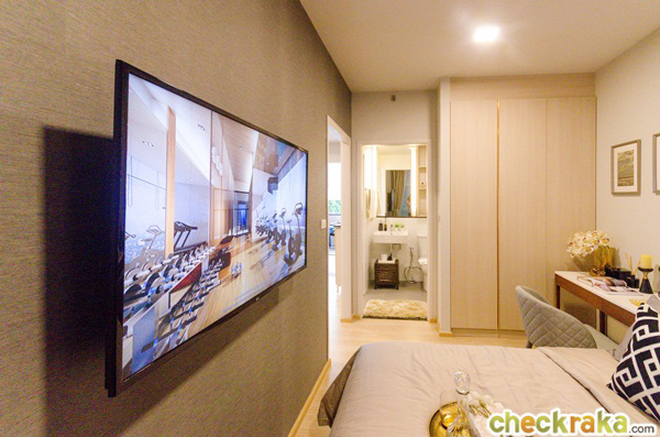 ส่วนที่เห็นในห้องตัวอย่างทางโครงการตกแต่งมาให้ดูเป็นไอเดียเท่านั้น ในห้องนอนสามารถนั่งดูทีวีจากเตียงนอนเลยก็ยังได้