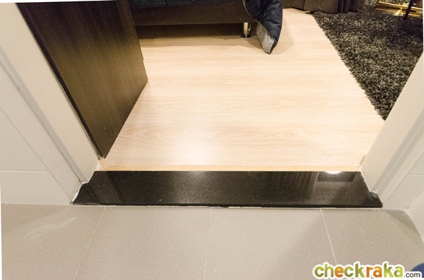 พื้นห้องยกสูงจากโถงทางเดินประมาณ 3 ซม. พื้นห้องปูด้วยลามิเนตหนา 12 มม.