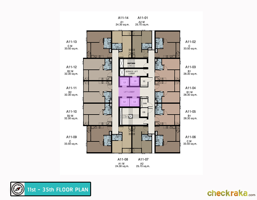 ชั้น 11-35 : จะเป็นห้องพักอาศัยทั้งหมดมียูนิตพักอาศัยอยู่ที่ 14 ยูนิตต่อชั้น ซึ่งถือว่าไม่หนาแน่นจนเกินไป ห้องมุมจะห้องแบบ 1 Bedroom ขนาด 33.5 ตร.ม. มี 4 ห้องต่อชั้น ห้องโซนด้านหน้าจะหันหน้าเข้ารถไฟฟ้า ขนาด 32.30 ตร.ม. ถ้าเป็นด้านหลังทิศเหนือวิวกระทรวงฯ จะเป็นห้องขนาด 28.30 ตร.ม. 3 ห้อง ส่วนห้อง Studio ขนาด 24.3 ตร.ม. จะมีแค่ 2 ยูนิตต่อชั้น และขนาด 25.7 ตร.ม. อีก 2 ยูนิตต่อชั้นเช่นกัน