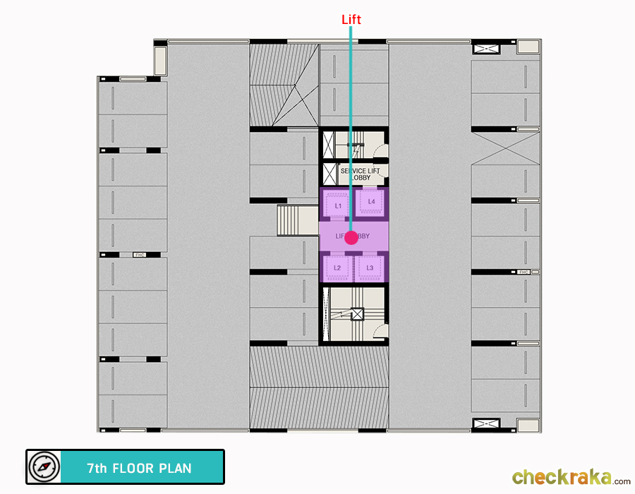 ชั้น 2 - ชั้น 7 : เป็นพื้นที่จอดรถ ความสูงประมาณ 2.30 เมตร