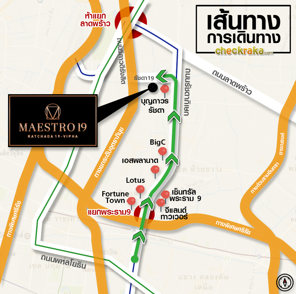 ก่อนอื่นเราลองเริ่มเดินทางที่ตั้งโครงการไปที่ปากซอยรัชดา 19 กันก่อนดีกว่าค่ะ