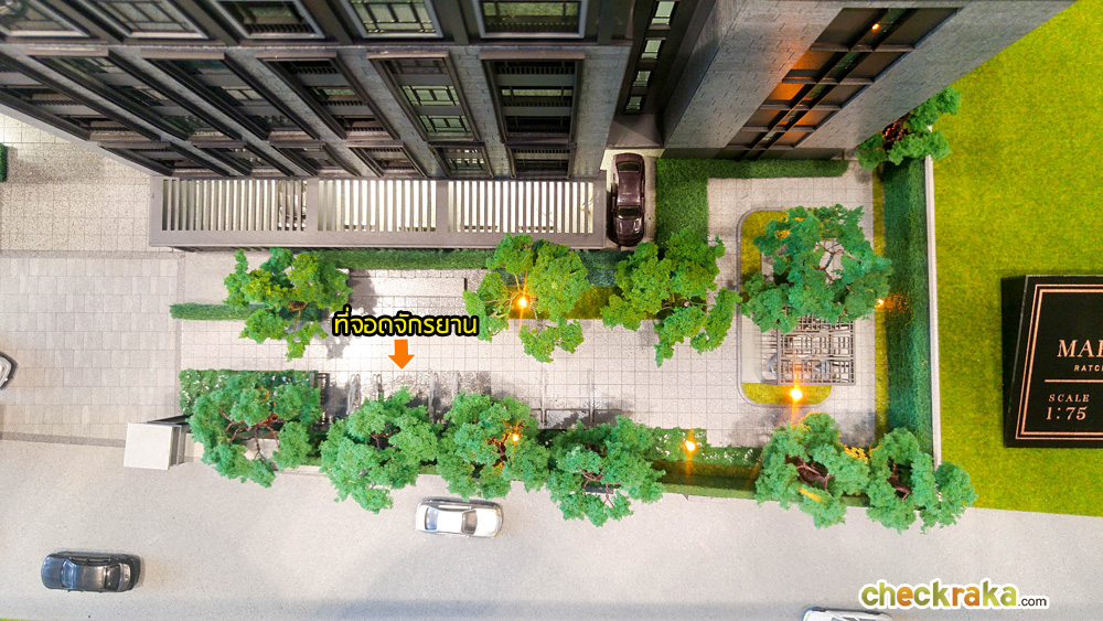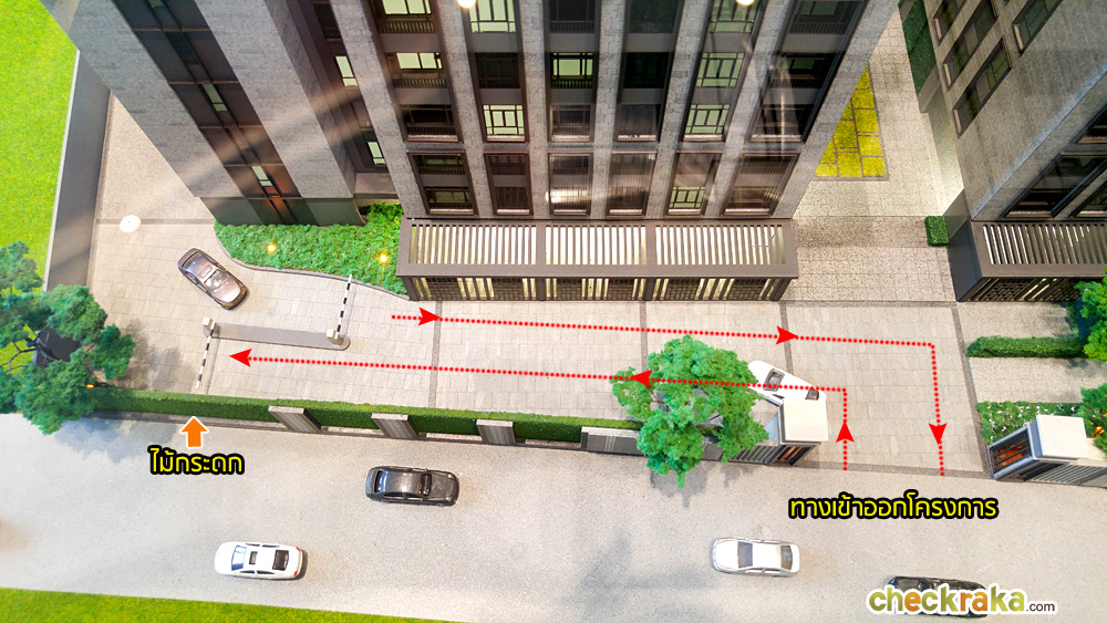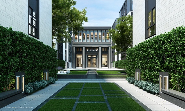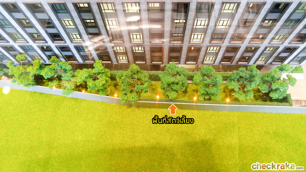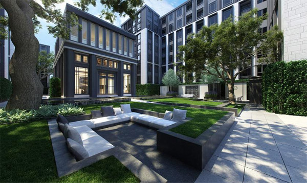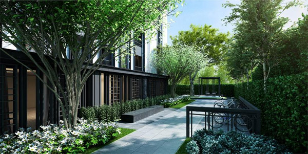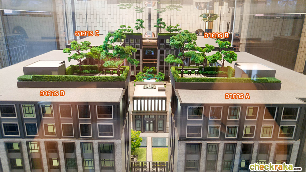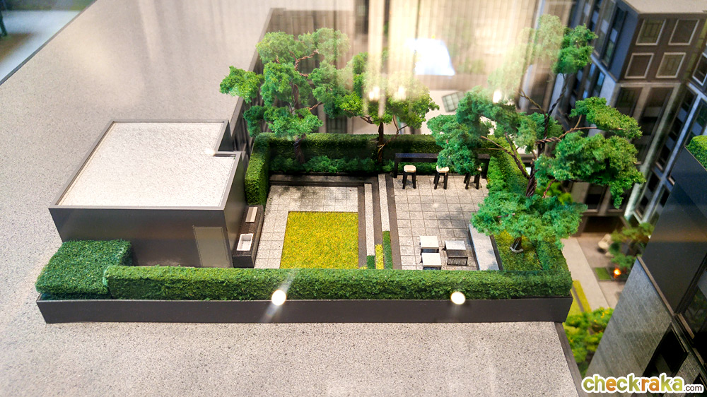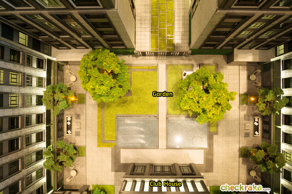 จากประตูทางเข้าโครงการเดินตรงเข้ามาจะเจอกับ Retreat Garden และ Courtyard ที่เชื่อมต่อกับส่วนของ Club House