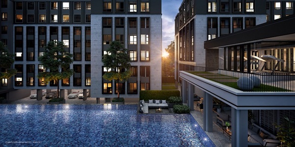 ภาพจำลองบรรยากาศจบริเวณสระว่ายน้ำ