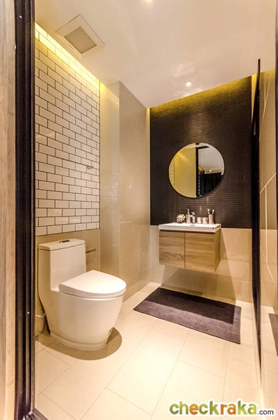 สุขภัณฑ์ภายในห้องน้ำเหมือนกับห้องที่แล้ว พื้นที่โดยรวมของห้องน้ำมีขนาดกว้างกว่าห้องที่แล้ว