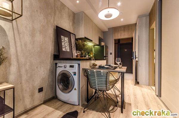 เครื่องซักผ้าของห้องนี้จะอยู่ใต้เคาน์เตอร์ครัว