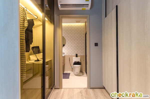 ได้ตู้เสื้อผ้าทั้ง 2 ฝั่งตั้งอยู่หน้าห้องน้ำ