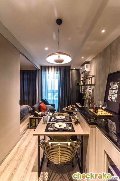 สามารถวางโต๊ะทานข้าวได้ขนาด 2 ที่นั่งวางติดกับเคาน์เตอร์ครัว
