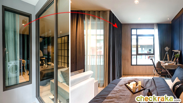 ผนังอีกด้านออกแบบให้เป็นกระจกสามารถมองภายในห้องนอนได้