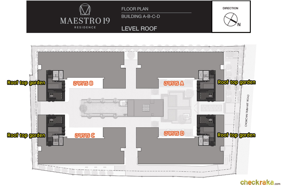 ชั้นดาดฟ้า : แต่ละอาคารจัดเป็นสวน และพื้นที่ทำบาร์บีคิว