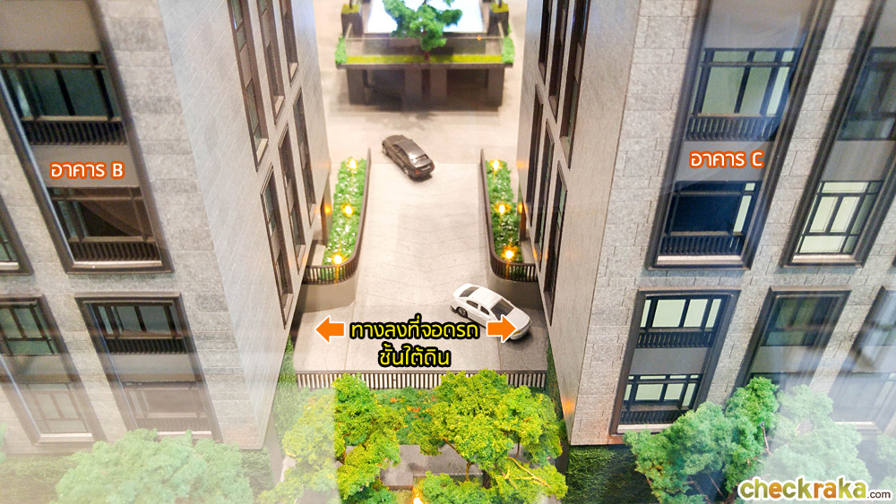 ทางลงไปยังที่จอดรถชั้นใต้ดินของอาคาร B และอาคาร C