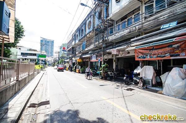 เส้นทางนี้มีทั้งอาคารพาณิยช์และทาวโฮม มีร้านอาหาร ร้านกาแฟ สลับกันไปค่ะ