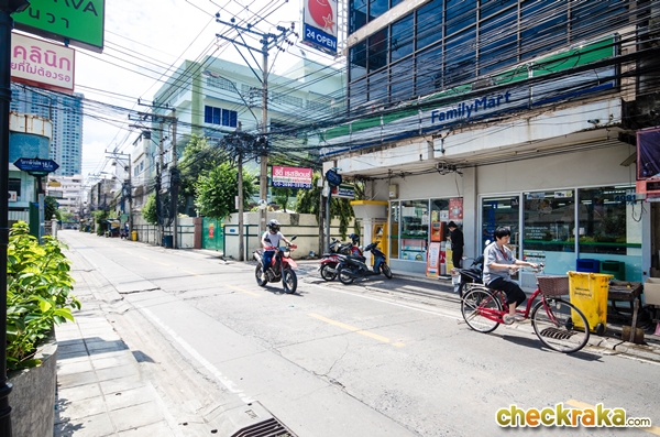 ส่วนทางด้านขวาของโครงการจะมีที่สำหรับจอดจักรยาน เผื่อให้ลูกบ้านปั่นไปซื้อของกินภายในซอย