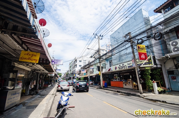 ทั้งสองข้างทางส่วนใหญ่จะเป็นอาคารพาณิชย์ มีร้านซ่อมรถ ซ่อมสารพัดซ่อมเลย สลับกับร้านอาหารที่หลากหลายมาก