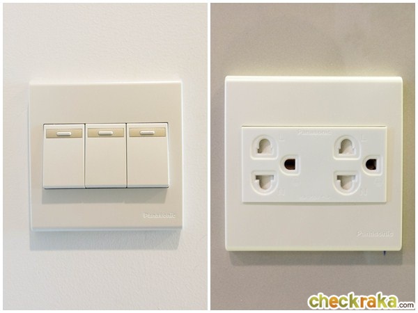 ปลั๊ก สวิตช์สีครีม (ถ้าเป็นห้อง Martin ปลั๊กจะเป็นสีเทา) ของ Panasonic