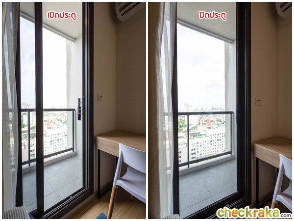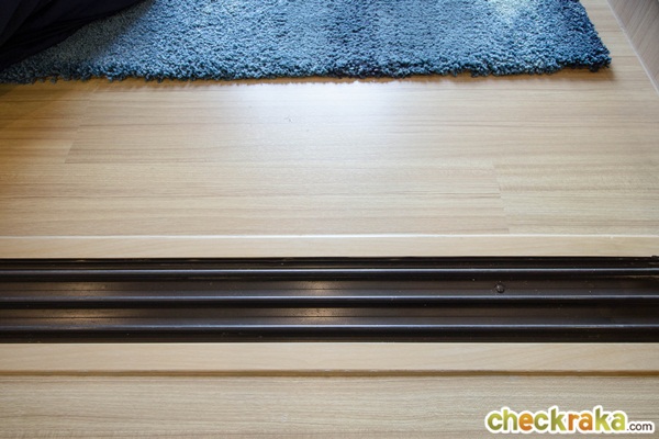 ประตูระเบียงบานเลื่อนแบบ 2 ตอน ธรณีประตูยกค่อนข้างสูงประมาณ 15 ซม. ระวังสะดุดด้วยนะคะ