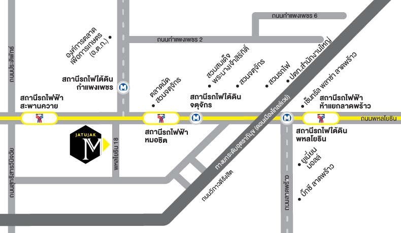 - MRT จตุจักร ห่างจากโครงการประมาณ 550 เมตร